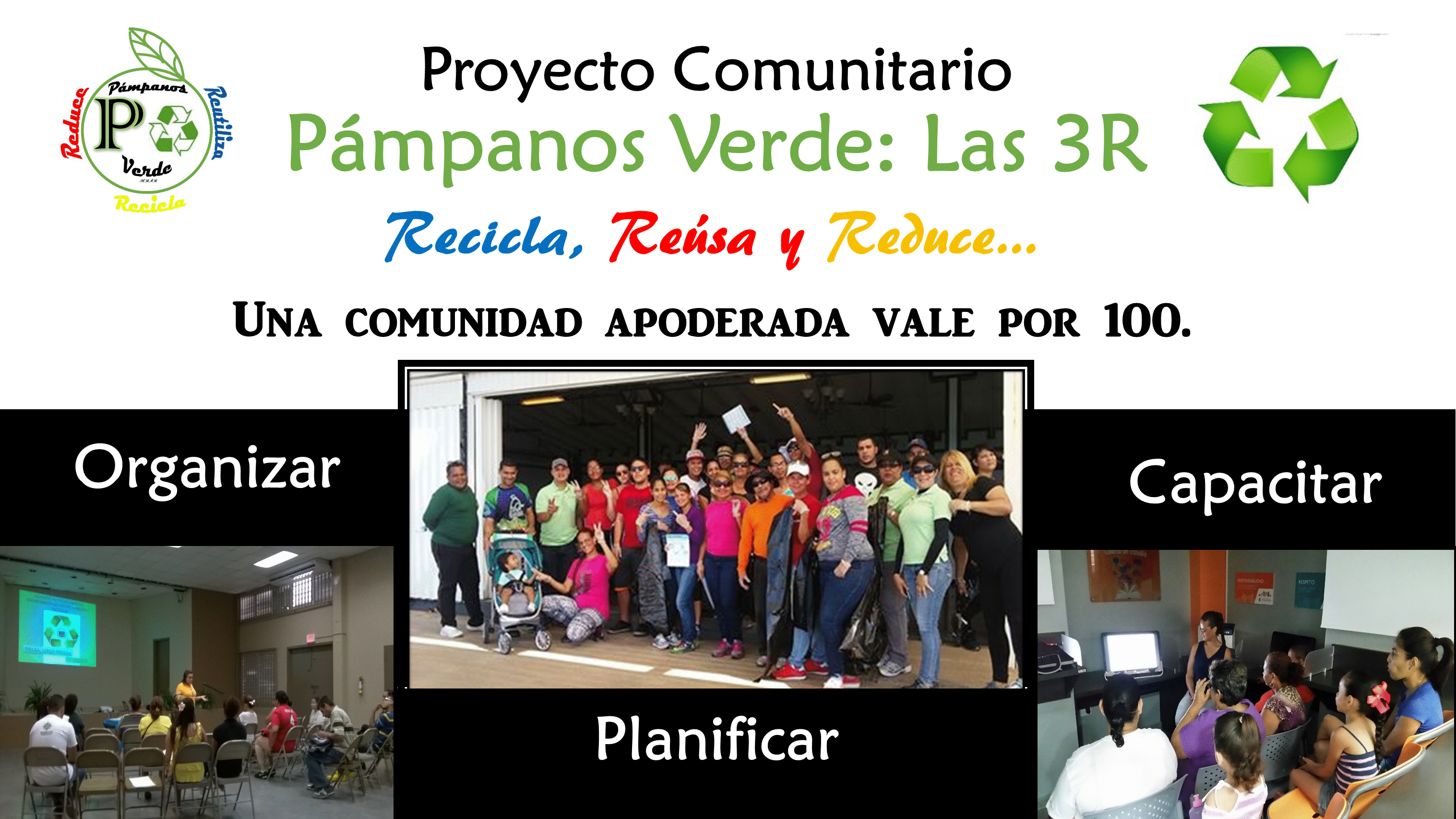 PÁMPANOS VERDE CORP. es una organización sin fines de lucro que desea educar a los residentes de los residenciales públicos y la comunidad puertorriqueña sobre la importancia de la práctica de las 3R’s y otros temas relacionados.